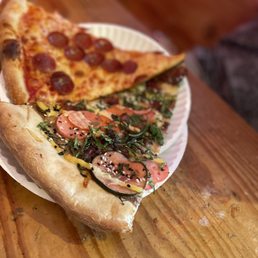 This place reminded me of NY/NJ by the slice pizzerias and I loved it! Super quick and straightforward. The ricotta pepperoni slice was incredible and since I LOVE cheese, so was the max and cheese. The chicken bacon cheddar ranch was also pretty dang good. Overall good quality for the price. I think the three slices were about $17 total.