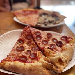 This place is on point for pizza by the slice. We got four slices: cheese, pep, sausage, and Margherita. Margherita was by far the best imo! One of the slices was slightly burnt, but they happily replaced. Service was very friendly. As mentioned by others, the seating area isn't very big, so it may be a little difficult. I'd rate this place a 4.2-4.3. Happy eating! Pro-tip: pick up a slice on your way to the game to take inside for a mid-game snack!