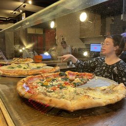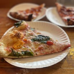 The food is incredible and the service is fast! They have one or two trays of solely vegan pizzas which is much appreciated, I recommend the Mac n cheese and the buffalo sauce with chick'n, top notch!! There are a few booths and a counter to sit at so be mindful that there isn't a ton of seating. But, the slices are easy to take and massive (~$5) so you could be fine with one or two. Highly recommend easy spot to find in wrigley!!